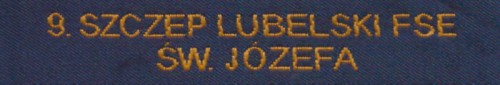 Naszywka 9. Szczepu Lubelskiego św. Józefa, naszywa się na prawe ramię, powyżej herbu chorągwi.
