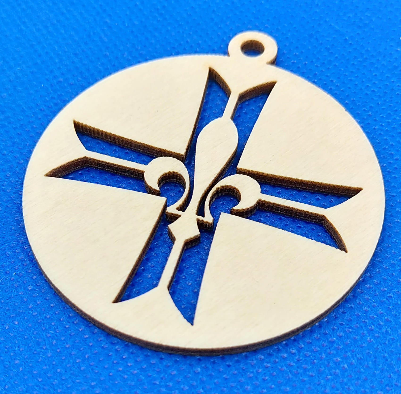 Zestaw 12 zawieszek choinkowych z motywem krzyża FSE w 3 wzorach. Całość zapakowana w ekologiczne pudełko. Wykonane z surowego materiału, nadają się do malowania.